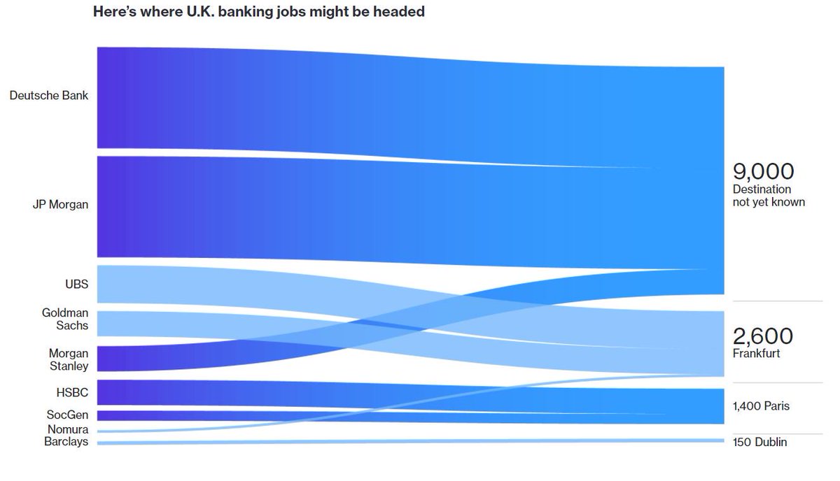 Στα παρακάτω γραφήματα φαίνεται που θα μετακινηθούν οι θέσεις εργασίας μετά το Brexit.