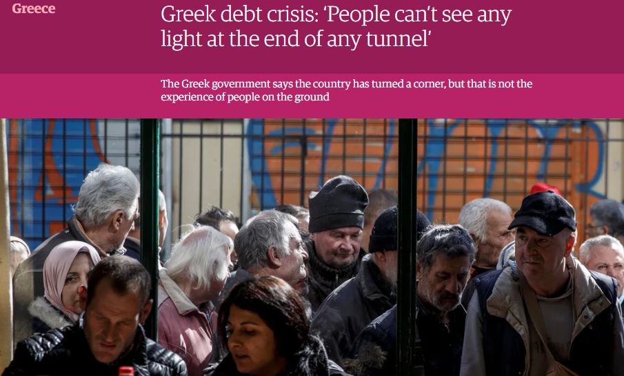 Οι Έλληνες πολίτες δεν βλέπουν φως στο τούνελ και κυριεύονται από συναισθήματα απογοήτευσης και αβεβαιότητας, παρά την αισιοδοξίας της κυβέρνησης, σχολιάζει σε σχετικό ρεπορτάζ ο Guardian.