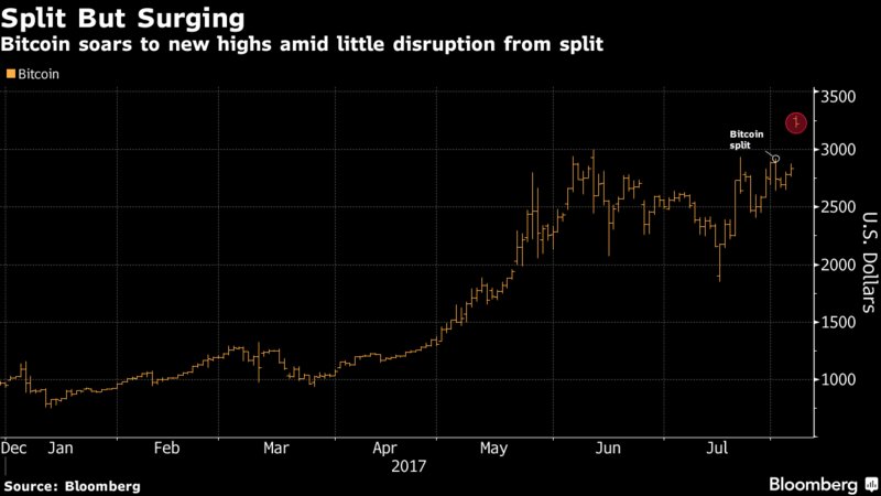 Σε νέα επίπεδα ρεκόρ ενισχύεται το bitcoin παρά τη διάσπαση του κρυπτονομίσματος, το οποίο διαπραγματεύεται πλέον σε δύο πλατφόρμες.