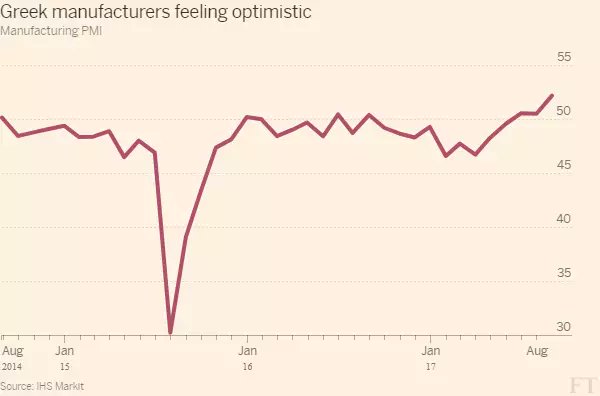 «Ταχύτερη ανάπτυξη και αισιόδοξοι παραγωγοί στον μεταποιητικό τομέα: Η ελληνική ανάκαμψη συνεχίζεται», αναφέρει χαρακτηριστικά η βρετανική εφημερίδα.