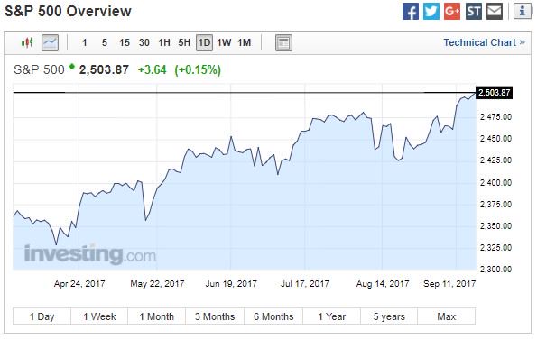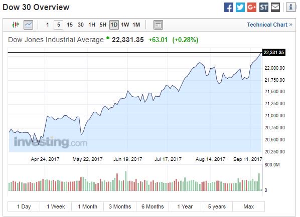 Με κέρδη έκλεισε σήμερα (18/9/2017) η Wall Street, με τους Dow Jones και S&P 500 να τερματίζουν σε νέα ιστορικά υψηλά, με τη διάθεση των επενδυτών για ανάληψη ρίσκου να επιστρέφει, καθώς υποχώρησε περαιτέρω η γεωπολιτική ανησυχία γύρω από τη Βόρεια Κορέα, ενώ το «βλέμμα» των επενδυτών στρέφεται στη συνεδρίαση της Ομοσπονδιακής Τράπεζας των ΗΠΑ (Federal Reserve, Fed), αυτή την εβδομάδα (19-20/9).
