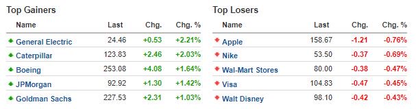 Σημαντική ώθηση στον Dow Jones προσέφεραν τα ισχυρά κέρδη στις μετοχές των βιομηχανικών κολοσσών Caterpillar (+2%) και General Electric (+2,2%).