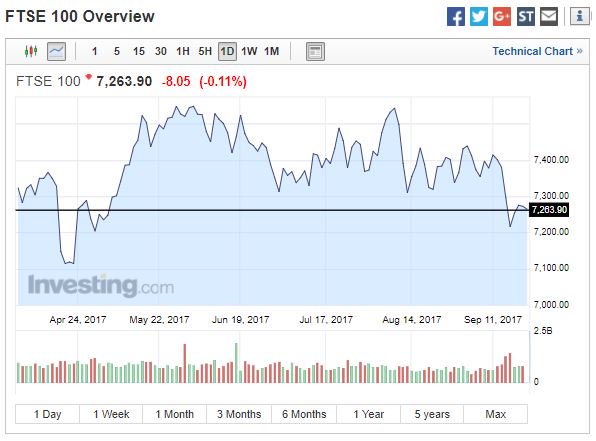 Την ίδια ώρα, πιέσεις στο χρηματιστήριο του Λονδίνου άσκησε η αβεβαιότητα γύρω από τις διαπραγματεύσεις για το Brexit, με τον επικεφαλής διαπραγματευτή της ΕΕ, Michel Barnier, να προειδοποιεί σήμερα για ένα επώδυνο και δαπανηρό για τη Βρετανία «διαζύγιο», ενώ ανέφερε ότι οι προτάσεις της βρετανικής κυβέρνησης είναι μη-ρεαλιστικές.