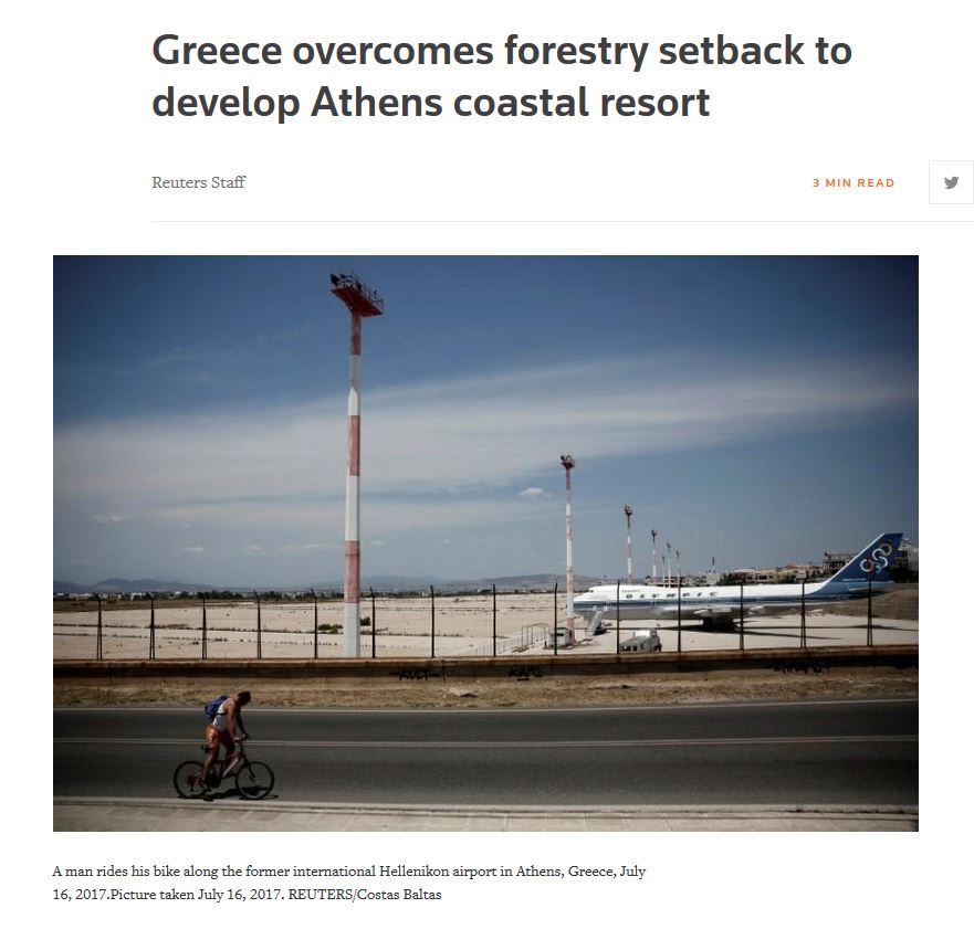 Η ελληνική κυβέρνηση κέρδισε την προσφυγή που είχε καταθέσει γο το θέμα της δασικής έκτασης στο πρώην αερδρόμιο (Ελληνικό) καθώς η Επιτροπή Δασικών Αμφισβητήσεων που, αποδέχθηκε τελικά τα επιχειρήματα της προσφυγής και συγκεκριμένα τη γνωμοδότηση του Νομικού Συμβουλίου του Κράτους, σύμφωνα με την οποία τα 37 στρέμματα προέρχονται από «τεχνητή φύτευση», και άρα δεν συνιστουν δασική έκταση, όπως αναφέρει δημοσίευμα του πρακτορείου Reuters.