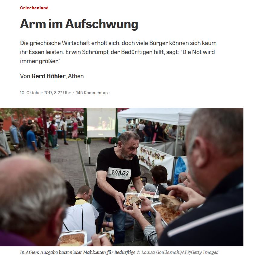 Η γερμανική εφημερίδα αναφέρεται στον ιστότοπό της αναλυτικά στο φιλανθρωπικό έργο του αυστριακού E. Srimf, ο οποίος ίδρυσε τον σύλλογο "Βοήθεια για την Ελλάδα" και μεταφέρει όσο συχνότερα μπορεί από την Αυστρία με βαν, από φάρμακα και παιδικές τροφές μέχρι πάνες και ιατρικά μηχανήματα.