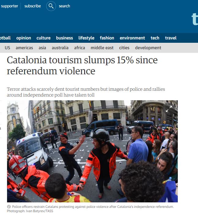«Οι τουρίστες είναι ιδιαίτερα ευαίσθητοι σε κάθε ένδειξη αστάθειας... τίτλοι ειδήσεων, εικόνες και βίντεο με την αστυνομία και τους ψηφοφόρους να συγκρούονται την 1η Οκτωβρίου είναι προφανώς αρκετές για να αποθαρρύνουν ένα σημαντικό αριθμό ανθρώπων.
