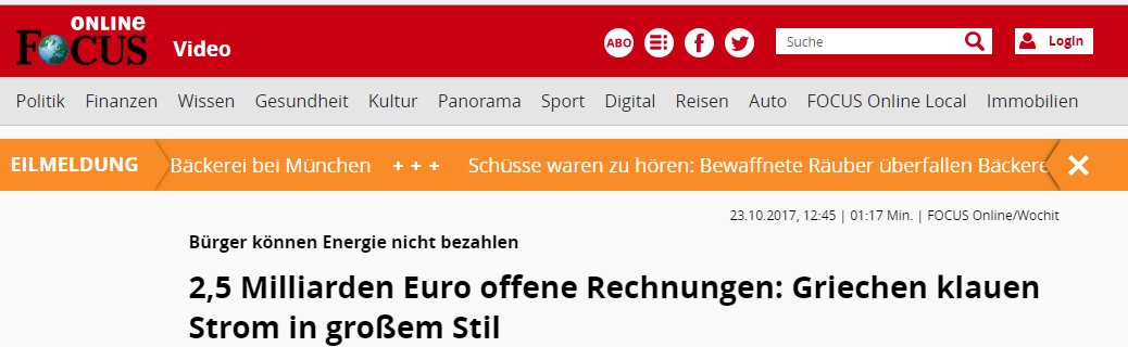 Στους ανεξόφλητους λογαριασμούς στη ΔΕΗ, αλλά και στις περιπτώσεις που γίνονται κλοπές στο ηλεκτρικό ρεύμα, αναφέρεται σε δημοσίευμα του, το γερμανικό περιοδικό Focus στην ηλεκτρονική του έκδοση.