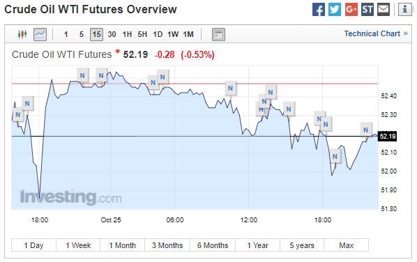 Ειδικότερα, η αμερικανική υπηρεσία Ενέργειας (ΕΙΑ) ανέφερε ότι τα αποθέματα αργού αυξήθηκαν κατά 856.000 βαρέλια την εβδομάδα έως τις 20 Οκτωβρίου 2017, σε σχέση με τις προβλέψεις των αναλυτών για μια μείωση κατά 2,6 εκατ. βαρέλια.