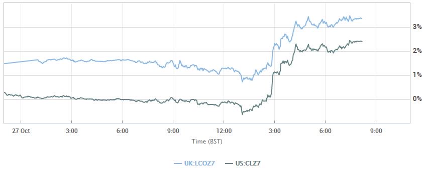 Παράλληλα, ώθηση στο πετρέλαιο προσέφεραν οι χθεσινές (26/10) δηλώσεις του πρίγκιπα της Σαουδικής Αραβίας ότι θα στηρίξει την επέκταση της συμφωνίας ΟΠΕΚ για τις περικοπές.