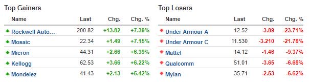 Στα εταιρικά νέα, οι μετοχές της Under Armour διολίσθησαν κατά 24%, στον απόηχο πιο αδύναμων από ό,τι αναμενόταν εσόδων για το γ’ τρίμηνο, ενώ η μετοχή της Archer Daniels Midland υποχώρησε κατά 4,5%, μετά από κέρδη κατώτερα των προσδοκιών.