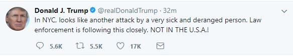 «Άρρωστο» και «ανισόρροπο» χαρακτήρισε ο πρόεδρος των ΗΠΑ, Donald Trump, τον δράστη της επίθεσης στο Μανχάταν.
