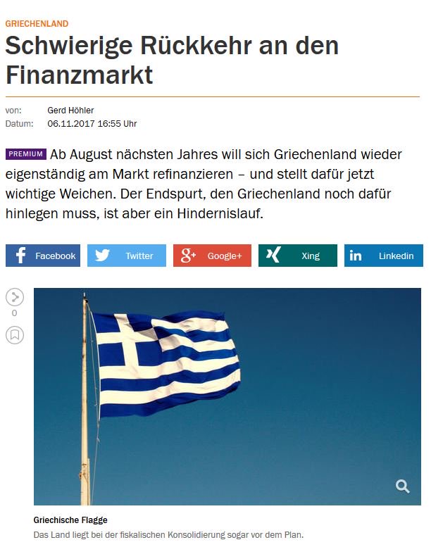 Ο ανταποκριτής της Handelsblatt σημειώνει ότι το ελληνικό υπουργείο Οικονομικών επιδιώκει να αντλήσει περί τα έξι δις ευρώ με δύο ή τρεις ακόμη εκδόσεις ομολόγων έως την επίσημη εκπνοή του προγράμματος στις 20 Αυγούστου 2018.