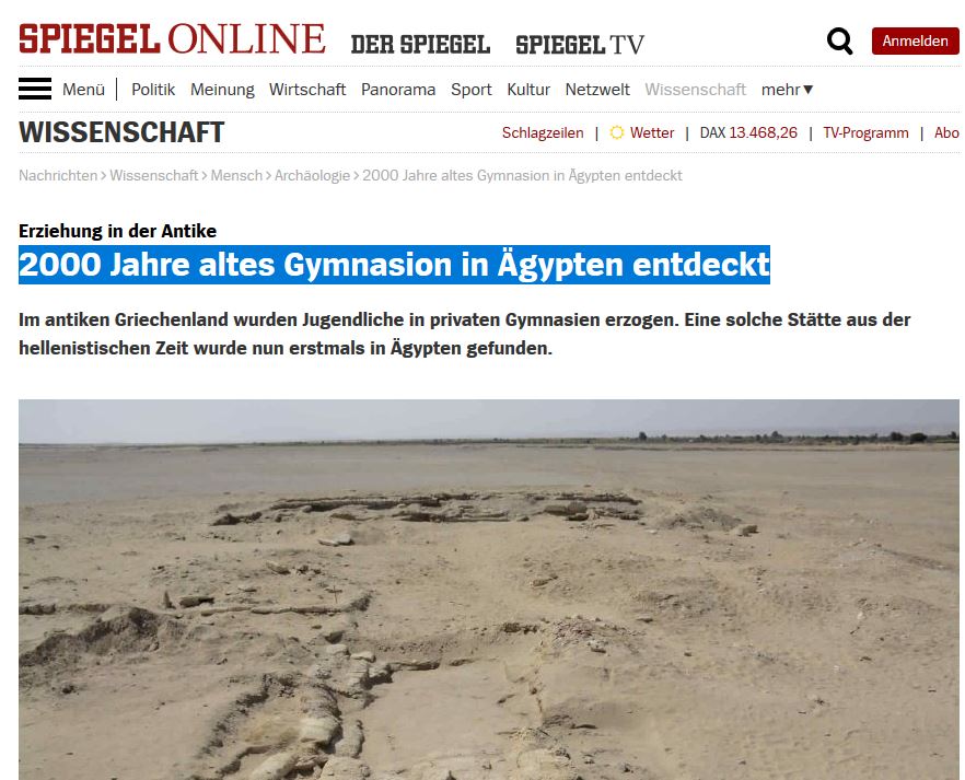 H αρχαιολογική σκαπάνη στην περιοχή Ουάτφα της Αιγύπτου περίπου 100 χιλιόμετρα από το Κάιρο, εκεί όπου κάποτε υπήρχε το αρχαίο χωριό με το όνομα Φιλοτέρης, που ίδρυσε ο Πτολεμαίος ο Β' το 300 π.Χ., από την αδελφή του Φιλοτέρα, έφερε στο φως ένα γυμναστήριο των ελληνιστικών χρόνων.