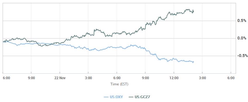 Με κέρδη έκλεισε σήμερα (22/11/2017) ο χρυσός, εν αναμονή των πρακτικών από την τελευταία συνεδρίαση της Ομοσπονδιακής Τράπεζας των ΗΠΑ (Federal Reserve, Fed), ενώ βρήκε στήριξη στην αποδυνάμωση του δολαρίου.