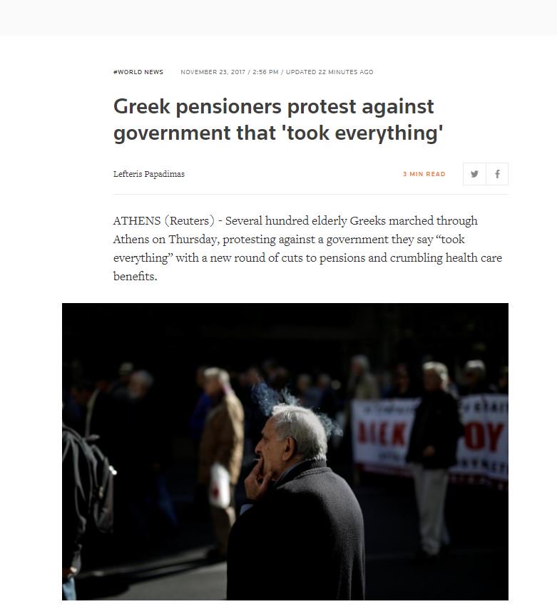 Όπως αναφέρει το δημοσίευμα μετά από τρία προγράμματα στήριξης η Ελλάδα έχει προχωρήσει σε αρκετές μεταρρυθμίσεις του συνταξιοδοτικού συστήματος, στις οποίες περιλαμβάνονται και σειρά περικοπών. Αποτέλεσμα κάποιες συντάξεις να έχουν υποχωρήσει κάτω από τα 600 δολάρια τον μήνα.