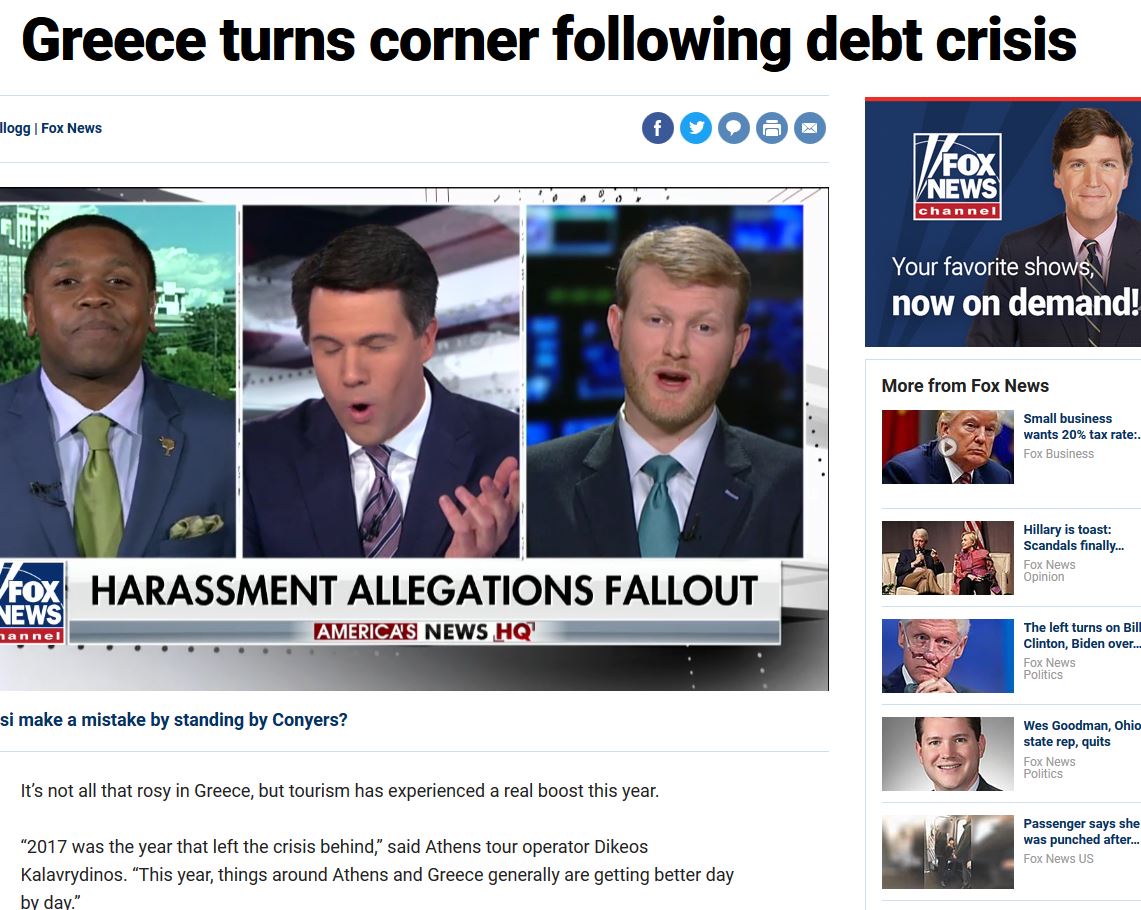 «Το 2017 ήταν το έτος που η Ελλάδα άφησε την κρίση πίσω της, δήλωσε ο ταξιδιωτικός πράκτορας Δίκαιος Καλαβρυτινός μιλώντας στο Foxnews.