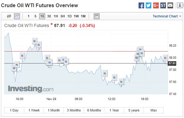 Με απώλειες 0,2% έκλεισε το πετρέλαιο, στα 57,99 δολ. ανά βαρέλι, εν όψει της συνεδρίασης του ΟΠΕΚ