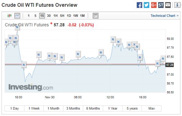 Με οριακά κέρδη έκλεισε σήμερα (30/11/2017) το πετρέλαιο, στον απόηχο της συμφωνίας του ΟΠΕΚ για μια 9μηνη παράταση της συμφωνίας για τις περικοπές στην παραγωγή.