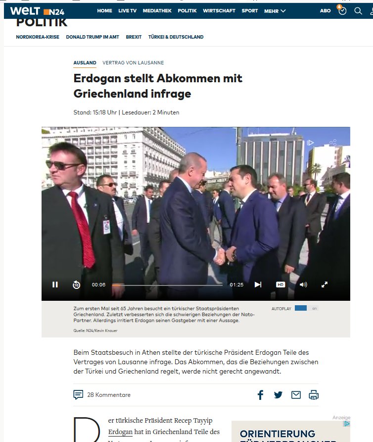 Στη δήλωση του προέδρου της Τουρκίας, Recep Tayyip Erdogan, αναφορικά με την αναθεώρηση της Συνθήκης της Λωζάνης, αναφέρεται δημοσίευμα της γερμανικής Welt.