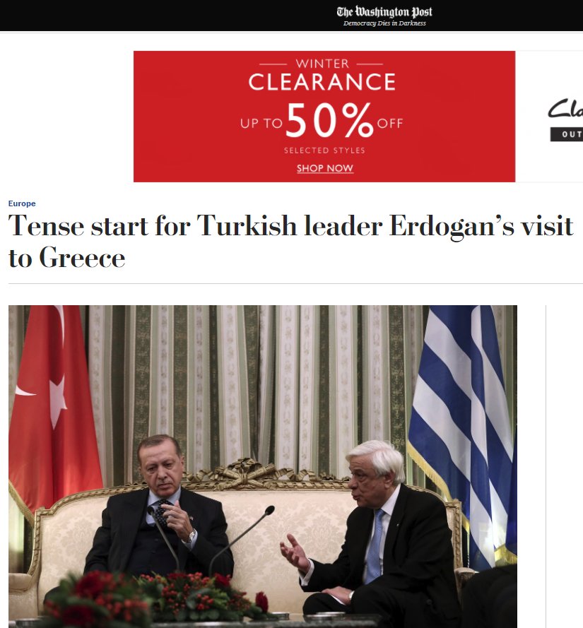 Η πρώτη επίσημη επίσκεψη Τούρκου προέδρου στην Ελλάδα σε έξι δεκαετίες ξεκίνησε με τεταμένο κλίμα την Πέμπτη 7 Δεκεμβρίου 2017, με τον Recep Tayyip Erdogan να επαναλαμβάνει τα σχόλια που έχουν θορυβήσει τους Έλληνες οικοδεσπότες του, για την ανάγκη «επικαιροποίησης» της συνθήκης Λωζάνης του 1923 που ορίζει τα σύνορα της σύγχρονης Τουρκίας.