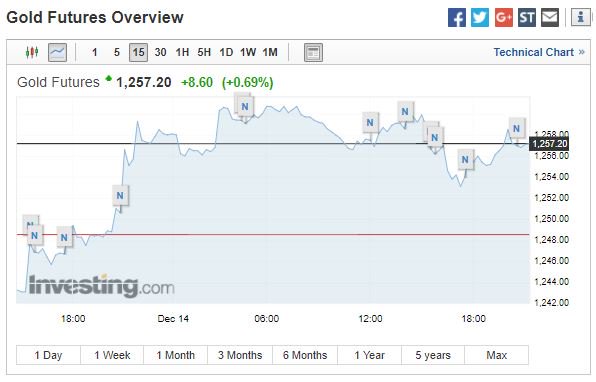 Με κέρδη έκλεισε σήμερα (14/12/2017) ο χρυσός, ανερχόμενος μάλιστα σε υψηλό μιας εβδομάδας, καθώς η Ομοσπονδιακή Τράπεζα των ΗΠΑ (Federal Reserve, Fed) διατήρησε χθες μια μετριοπαθή στάση, παρέχοντας στήριξη στις τιμές του πολύτιμου μετάλλου, παρά την τρίτη αύξηση των επιτοκίων που ανακοίνωσε για το 2017.