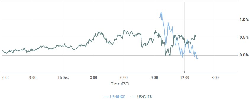 Η τιμή του αργού σημείωνε άνοδο στα 57,37 δολ. ανά βαρέλι, έναντι των 57,31 δολ. που κατέγραφε πριν τη δημοσίευση των στοιχείων της Baker Hughes.