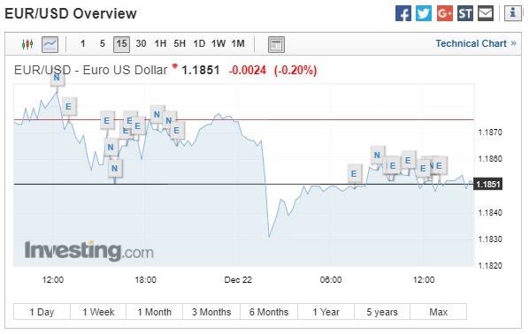 Υποχωρεί σήμερα (22/12/2017) το ευρώ έναντι του δολαρίου, στον απόηχο της νίκης των αυτονομιστών της Καταλονίας, που εγείρει ανησυχίες σχετικά με μια πιθανή διάλυση της τέταρτης μεγαλύτερης οικονομίας της Ευρωζώνης.