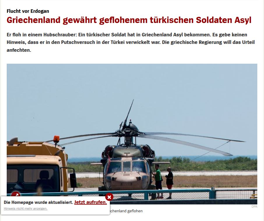 Το Spiegel υπενθυμίζει, πως ο Τούρκος αξιωματικός είχε καταφύγει με ελικόπτερο στη βόρεια ελληνική πόλη Αλεξανδρούπολη μετά την απόπειρα πραξικοπήματος στην Τουρκία στα μέσα Ιουλίου 2016 μαζί με άλλους επτά στρατιωτικούς.