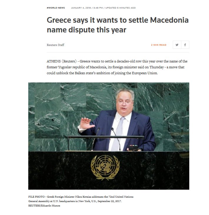 Στις δηλώσεις του Έλληνα υπουργού Εξωτερικών, Νίκου Κοτζιά, αναφορικά με το θέμα της ονομασίας την πΓΔΜ, αναφέρεται δημοσίευμα του Reuters.