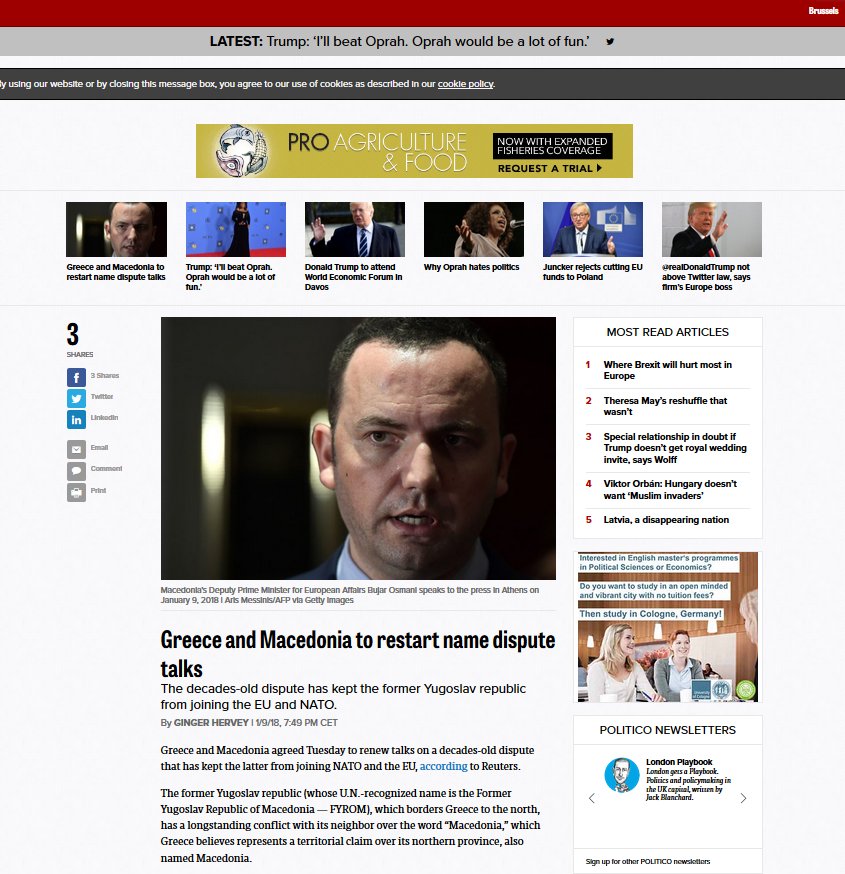 Στο δημοσίευμα φιλοξενούνται και δηλώσεις του αναπληρωτή πρωθυπουργού των Σκοπίων, Bujar Osmani, ο οποίος επισκέφθηκε σήμερα (9/1) την Αθήνα.
