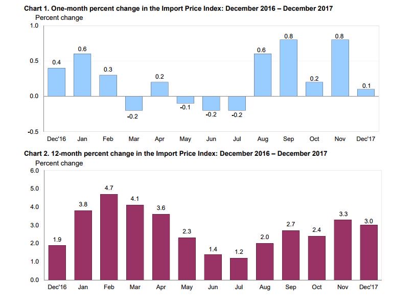 Ειδικότερα, το αμερικανικό υπουργείο Εργασίας ανακοίνωσε σήμερα (10/01/2018) ότι οι τιμές εισαγωγών αυξήθηκαν κατά 0,1% τον Δεκέμβριο του 2017.