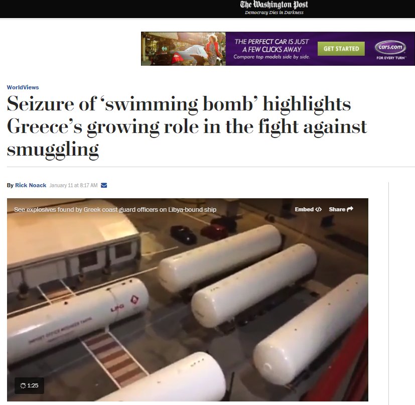 Η αμερικανική εφημερίδα σημειώνει ότι στις 6 Ιανουαρίου 2018, οι ελληνικές αρχές επιβιβάστηκαν σε πλοίο το οποίο υποτίθεται ότι είχε προορισμό την Αραβική Χερσόνησο, χωρίς ωστόσο να διαθέτει ναυτικούς χάρτες με τον προορισμό αυτό.