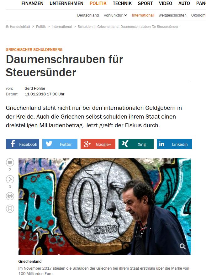 Αναλυτικό άρθρο δημοσιεύεται στην οικονομική εφημερίδα Handelsblatt για τα χρέη των ελλήνων φορολογουμένων αλλά και επιχειρήσεων προς το δημόσιο.