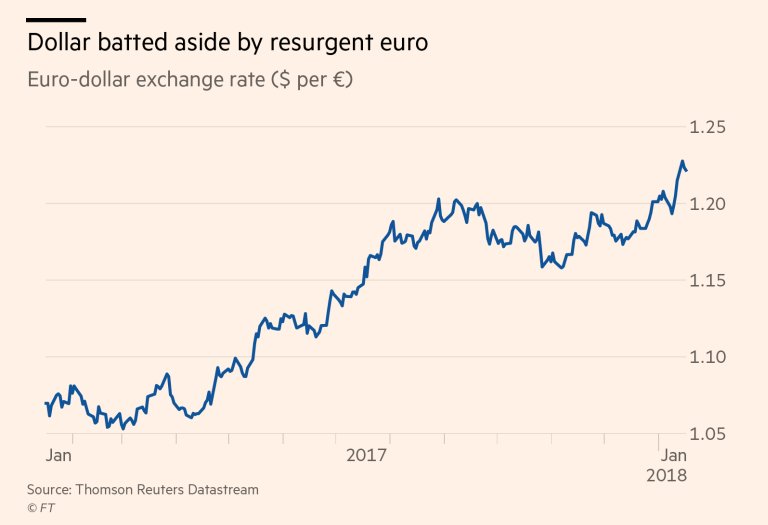 Οι αναλυτές προβλέπουν ότι το ευρώ θα κλείσει το 2018 στα 1,22 δολάρια, ενώ τα παράγωγα δείχνουν ότι οι επενδυτές αναμένουν να φθάσει στα 1,26 δολάρια, δηλαδή να ενισχυθεί κατά επιπλέον 3% σε σύγκριση με το 2017.