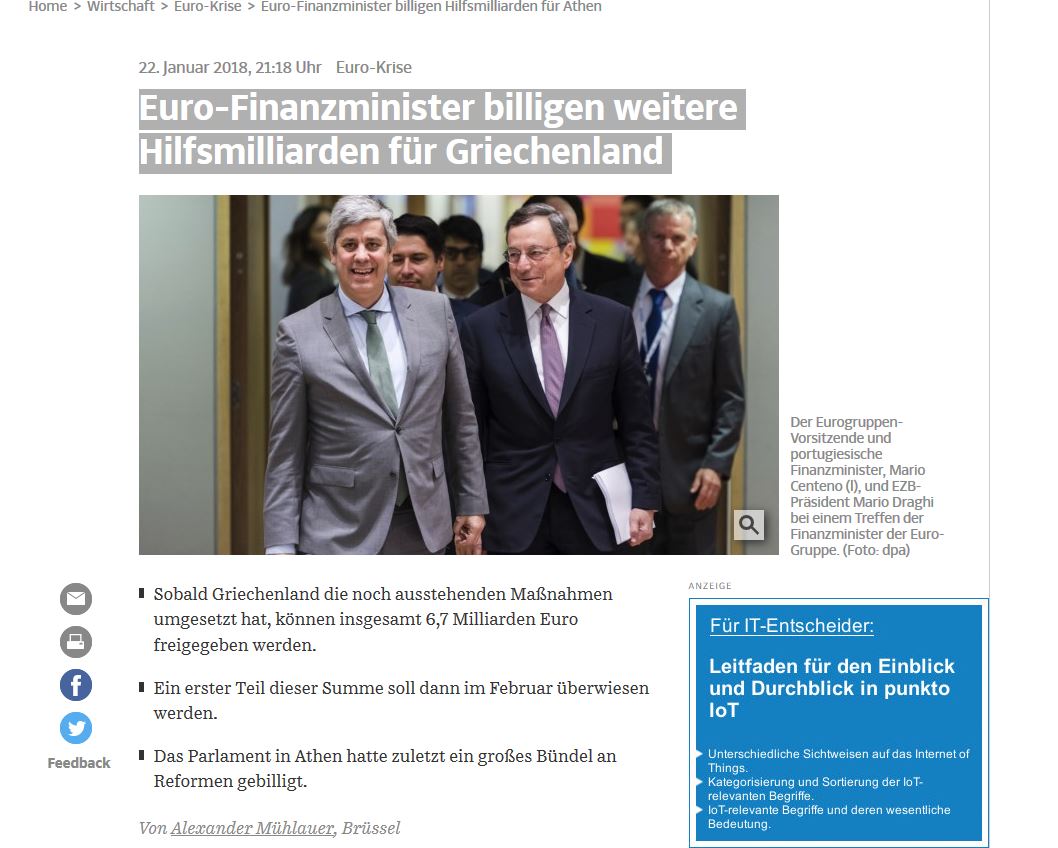 Το πρώτο μέρος αυτού του ποσού των 5,7 δισ. ευρώ θα εκταμιευτεί στην Ελλάδα το Φεβρουάριο του 2018.