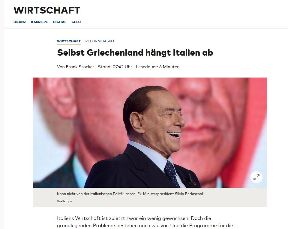 Η γερμανική εφημερίδα επισημαίνει ότι «η Ιταλία είναι ουραγός στην Ευρωζώνη, βρισκόμενη σε χειρότερη θέση ακόμα και από την Ελλάδα.