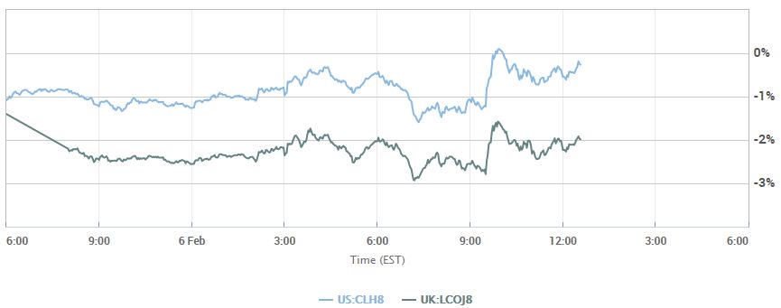 Η τιμή του αργού υποχωρούσε κατά 30 σεντς ή 0,5%, στα 63,85 δολ. ανά βαρέλι, και του Brent κινείτο κατά 48 σεντς ή 0,7% χαμηλότερα, στα 67,14 δολ. ανά βαρέλι.