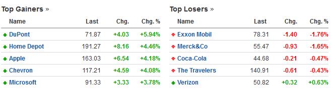 Οι μετοχές με την μεγαλύτερη άνοδο και την μεγαλύτερη πτώση στο Dow Jones