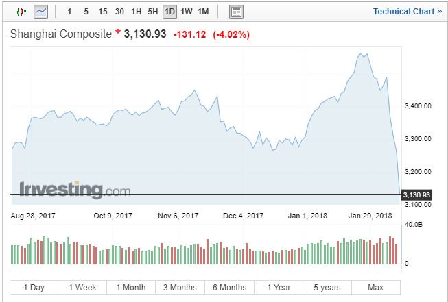 Στην Κίνα ο Shanghai Composite Index έκλεισε με πτώση 4,05% στις 3.129 μονάδες, καταγράφοντας τη χειρότερη συνεδρίαση των τελευταίων δύο ετών.