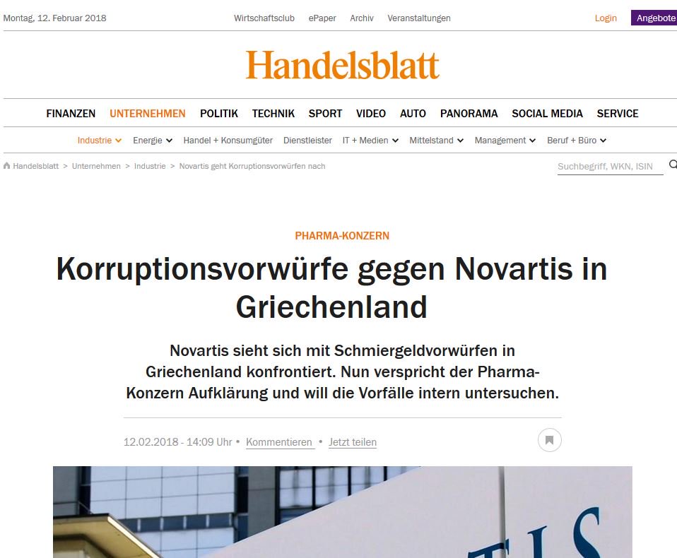 Ηandelsblatt: Υπόθεση διαφθοράς εναντίον της Novartis στην Ελλάδα