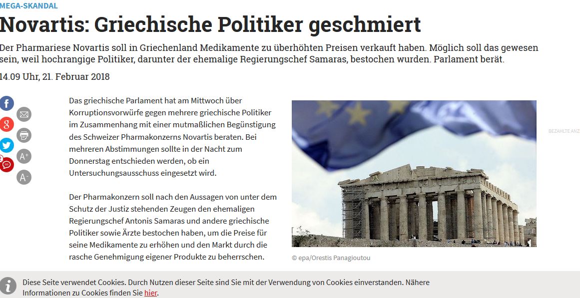 Kleine Zeitung: Μέγα σκάνδαλο - Novartis - Λαδώθηκαν Έλληνες πολιτικοί