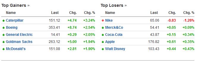 Οι μετοχές με την μεγαλύτερη άνοδο και την μεγαλύτερη πτώση στο δείκτη Dow Jones