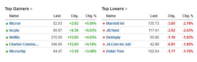 Οι μετοχές με την μεγαλύτερη άνοδο και την μεγαλύτερη πτώση στο δείκτη Nasdaq