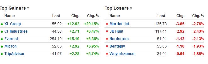 Οι μετοχές με την μεγαλύτερη άνοδο και την μεγαλύτερη πτώση στο δείκτη S&P 500