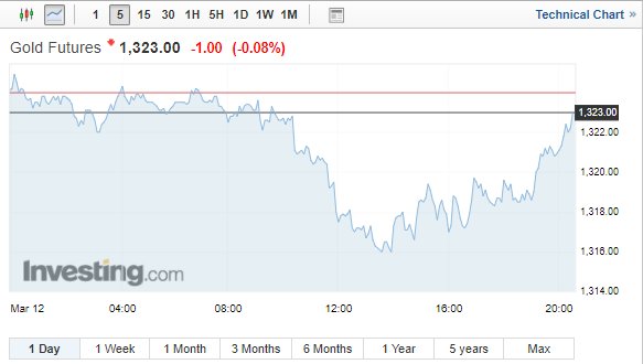 Έτσι, η τιμή του συμβολαίου του χρυσού παραδόσεως Απριλίου έκλεισε σήμερα με απώλειες 0,2% ή 3,20 δολ., στα 1.320,80 δολ. ανά ουγγιά.