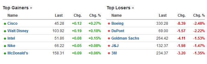 Οι μετοχές με την μεγαλύτερη άνοδο και την μεγαλύτερη πτώση στο δείκτη Dow Jones