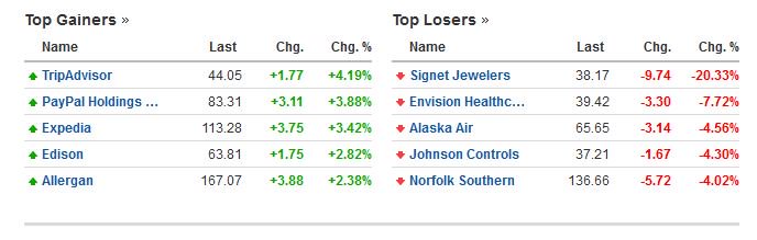 Οι μετοχές με την μεγαλύτερη άνοδο και την μεγαλύτερη πτώση στο δείκτη S&P 500