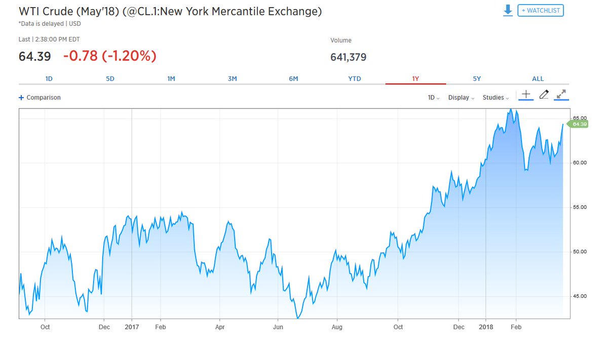 Σε ανάλογη πορεία κινήθηκε και το ελαφρύ αμερικανικό αργό (WTI) το οποίο αφού πρώτα πλησίασε νέα υψηλά, τελικά εμφάνισε απώλειες 1,3% για να διαμορφωθεί στα 64,30 δολάρια το βαρέλι.