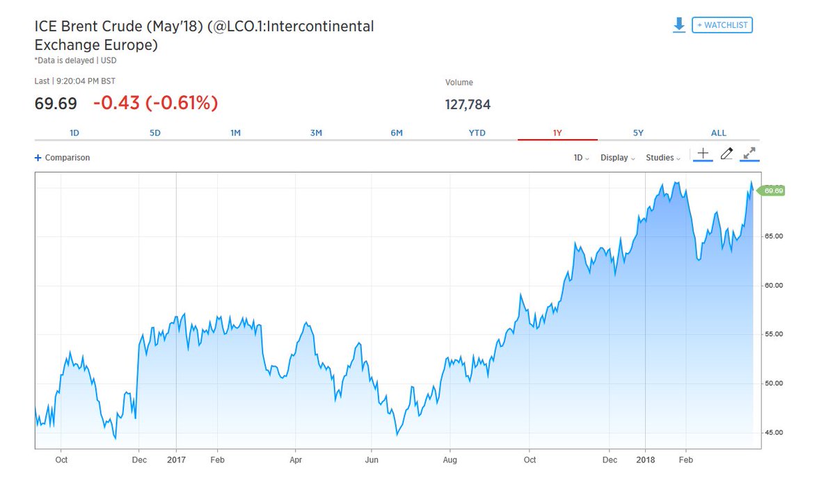 Άνω των 69 δολ. το Brent και άνω των 64 δολ. το αμερικανικό αργό