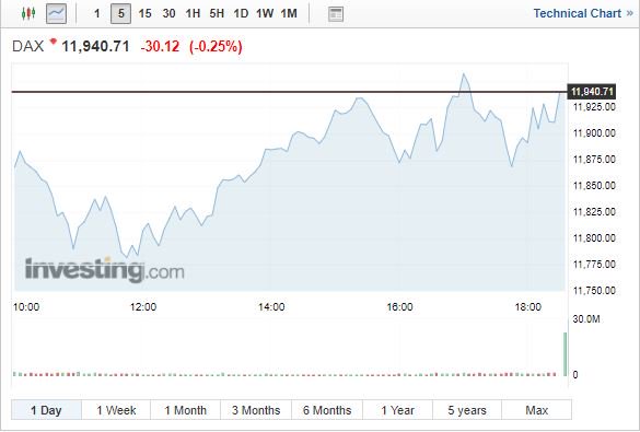 Ο DAX στη Φρανκφούρτη υποχώρησε κατά 0,25% στις 11.940,71 μονάδες, ο FTSE 100 στο Λονδίνο σημείωσε άνοδο 0,64% στις 7.044,74 μονάδες, ενώ ο CAC 40 στο Παρίσι έκλεισε κατά 0,29% υψηλότερα στις 5.130,44 μονάδες.